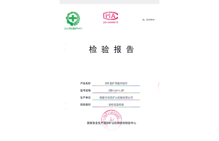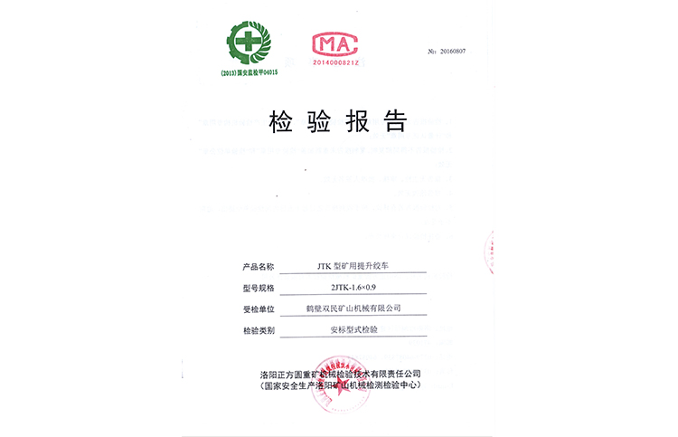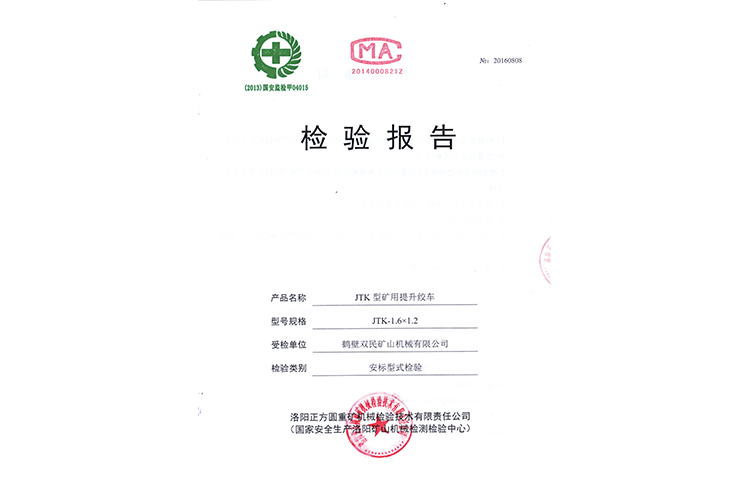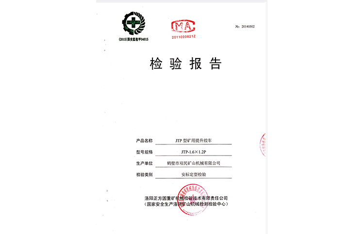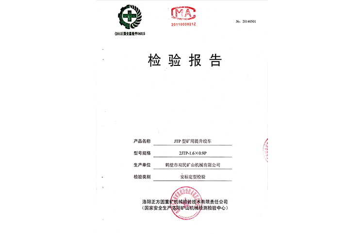 檢驗(yàn)報(bào)告JTP型礦用提升絞車