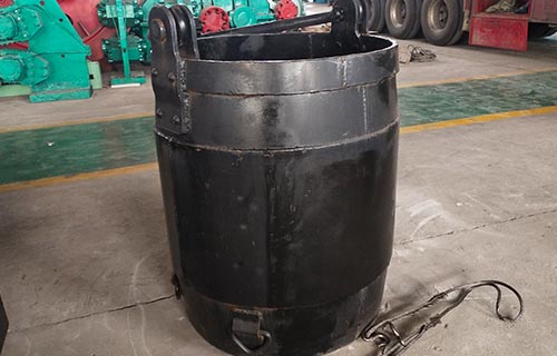 桶體下部四周,有四個鉤環(huán)。2m3及以下掛鉤式吊桶,鉤環(huán)主要用于掛鉤卸矸時使用。2m3以上吊桶,由于鉤環(huán)強度限制,只供提升時穩(wěn)定、移動及更換吊桶時操作之用。吊桶是鑿井期間的主要提升容器,關(guān)系到井下作業(yè)人員的生命,因此應由制造廠生產(chǎn),不斷改進制造工藝,確保制造質(zhì)量。
